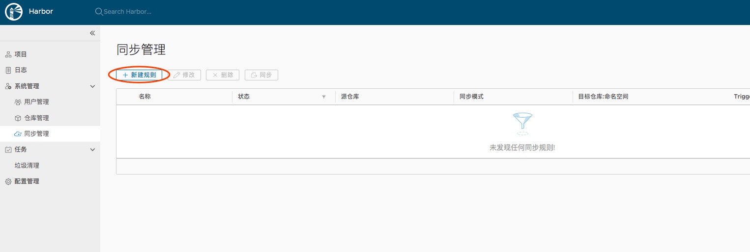 登录到Harbor之后在同步管理中创建同步规则如下: