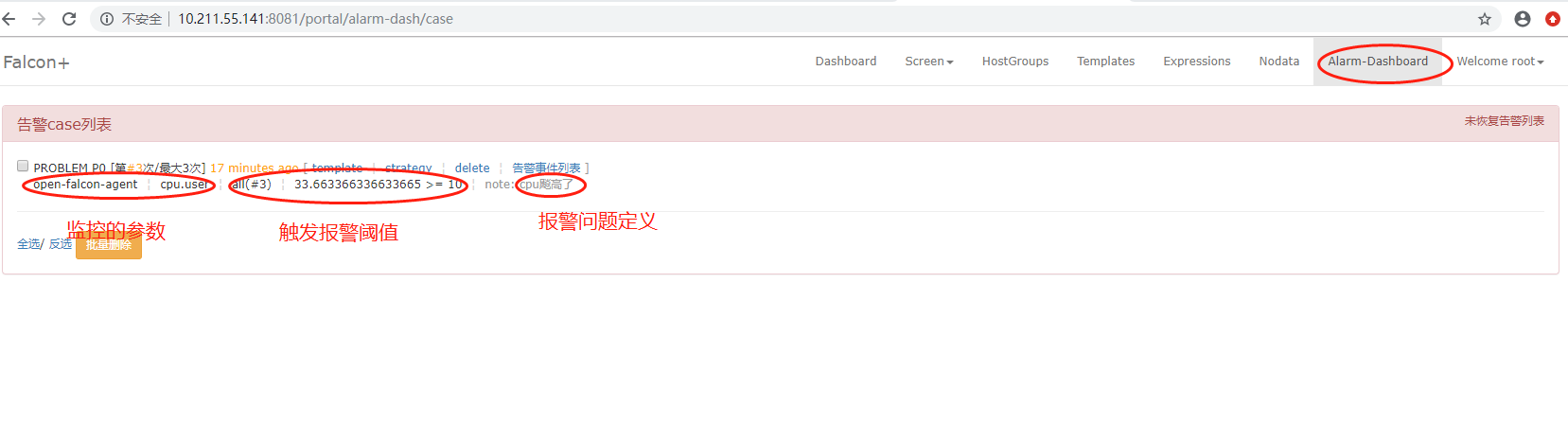 等一会,看一下Open-Falcon是否有报警出现,报警信息在Alarm-Dashboard里看下面的截图