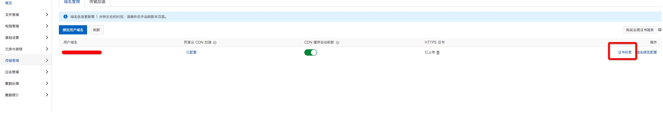 在证书托管里上传自己的域名证书,上传后可以机器cdn缓存自动更新即可。这样oss的cdn加速就做好了,是不是很简单,动起手吧。