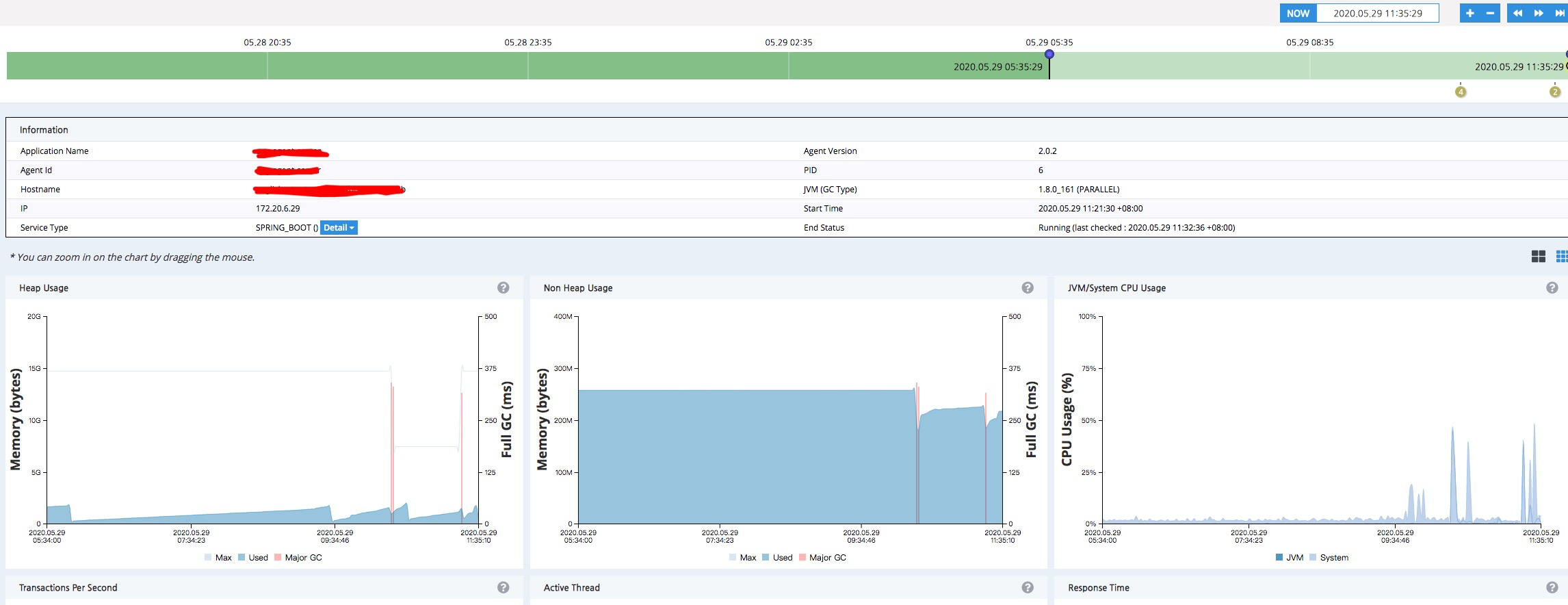 如上图,在Servers List中有两台服务器运行同一个服务,pinpoint使用agent_id用来区分,服务共接收到18个请求,分别在26237和5635上各处理了9个请求,这就是负载均衡。