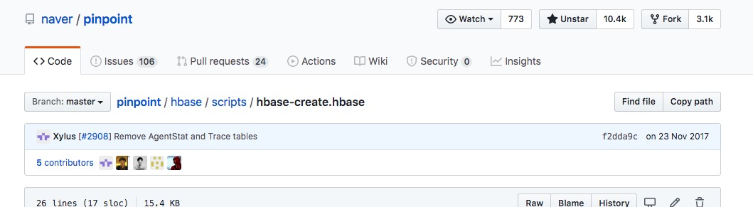 从倒入hbase数据库开始,修改一下pinpoint默认的时间,pinpoint数据文件中默认的是60天,单位是秒,我们这里是只保留7天,换算成秒也就是86400秒,所以只需要把60天的秒换成86400即可。下面看看pinpoint数据文件,在github的路径是:pinpoint/hbase/scripts/hbase-create.hbase
