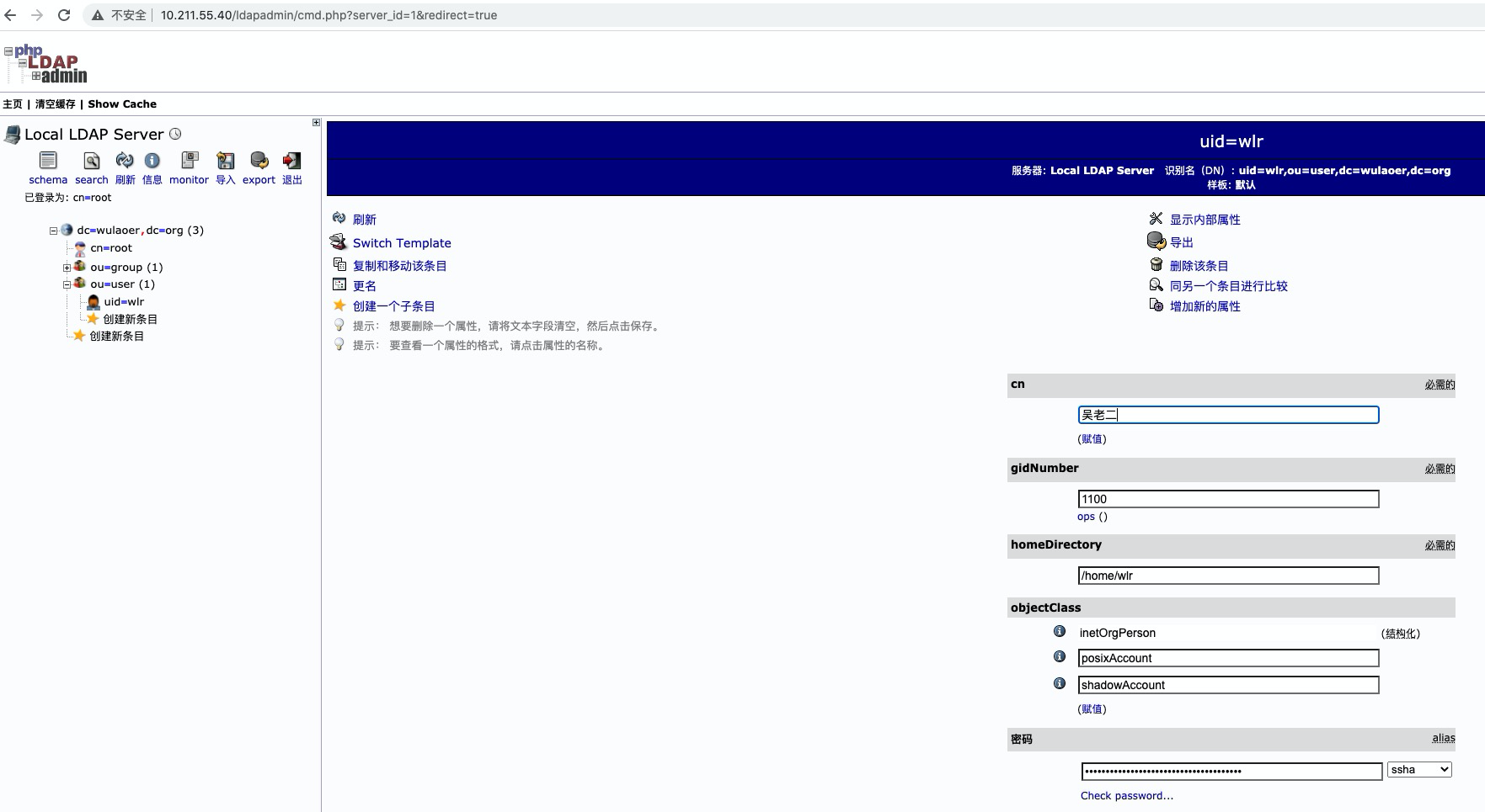 dn: uid=wlr,ou=user,dc=wulaoer,dc=org