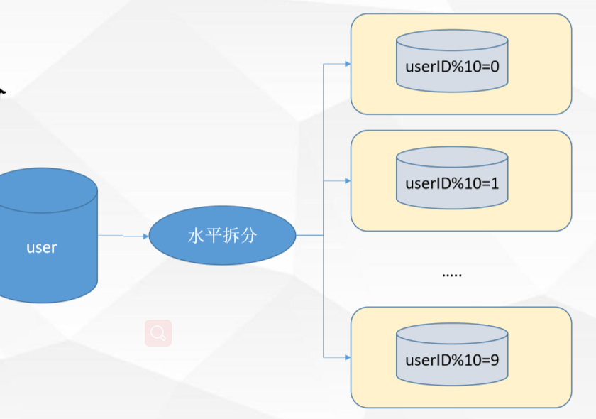 垂直切分解决不了一些大表大量访问数据的问题,因此需要水平切分。所谓的水平切分,就是将某些大表的数据按照规则分别分散到a1,a2,a3....这些表上,然后访问数据就到a1,a2,a3这些表上访问。