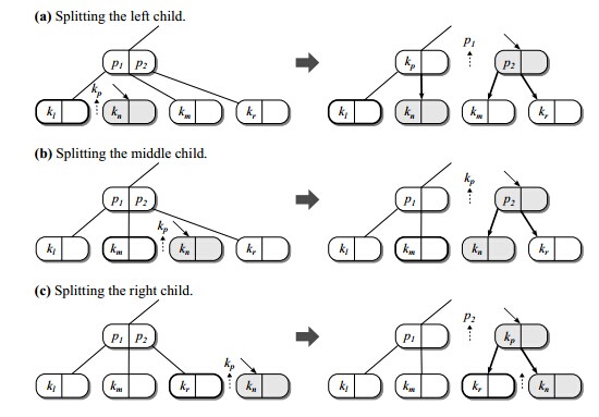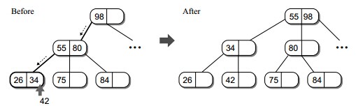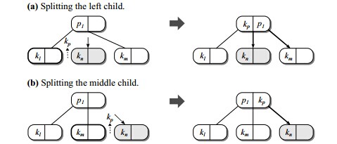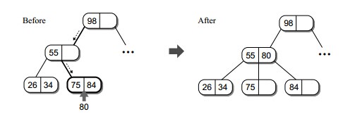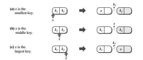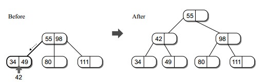 2.向已满的节点添加关键字,需要将节点分裂为两个节点: