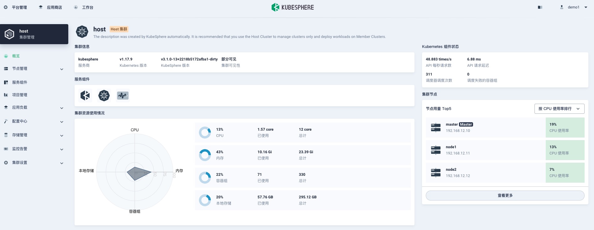 kubesphere是青云提供的,他们针对青云的友好程度是最高的,kubesphere有自己的论坛,一般有问题都会有人回答,kubesphere的的功能是最全的,也会提供付费解答,但是平台是开源的,很多有点规模的都会选择kubesphere,下面看一下kubesphere页面,参考地址:https://kubesphere.io/zh/docs/