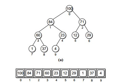 完全二叉树可以用数组来表示,如果从0开始,对于数组中任意i位置的元素,其左儿子在2i+1位置上,右儿子在2i+2位置上,父节点在floor((i-1)/2)位置上。