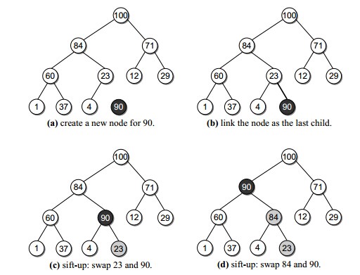 将要插入的元素X放入到堆末尾,如果不破坏堆的结构,操作完成,否则将X上滤。