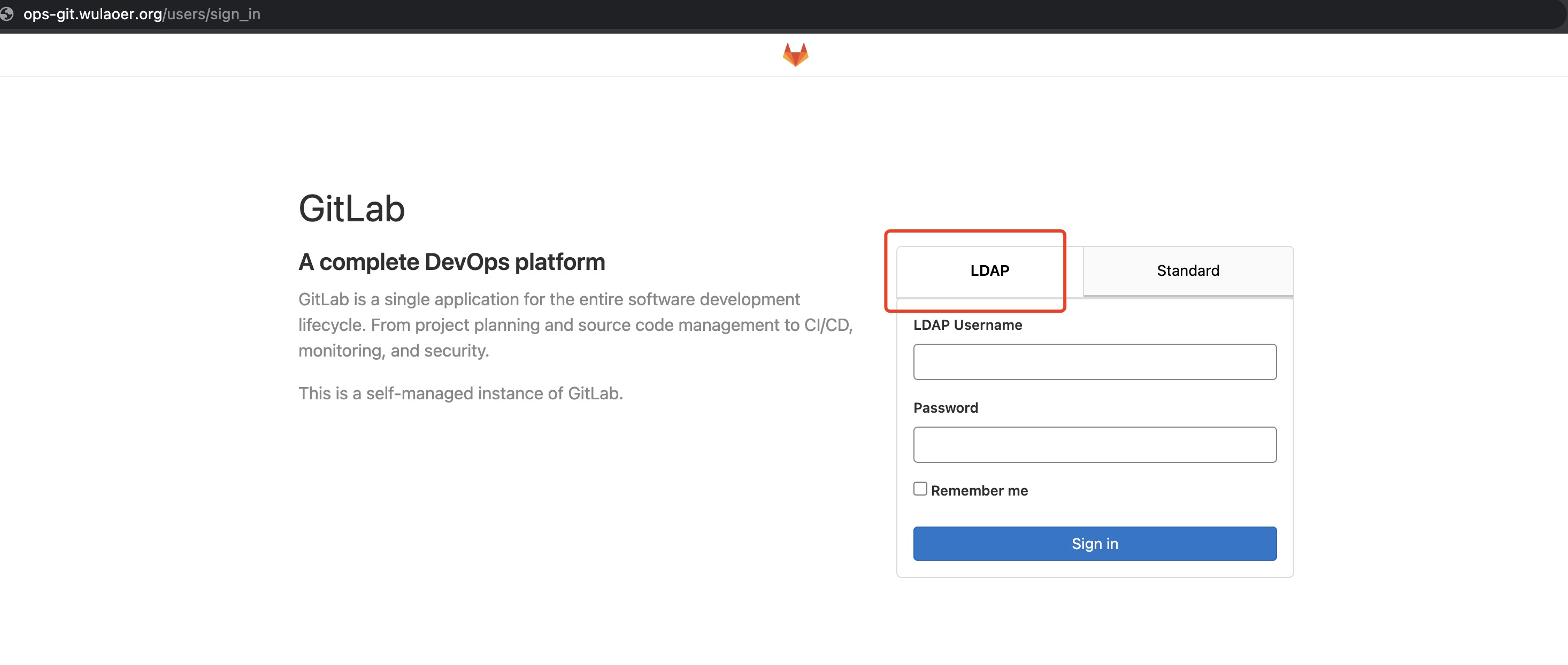 ldap已经配置好了,我这里是因为上次实现的时候把注册关闭了,如果不关闭注册功能应该现实三栏。而且针对gitlab的升级也写的挺好的,如果备份可以参考:https://www.wulaoer.org/?p=2370