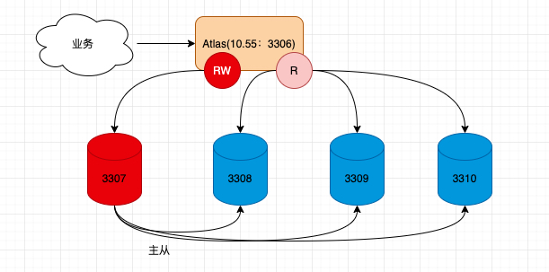 两台服务器 192.168.10.54:MySQL 5.7.30 一主三从,3307-3310端口 192.168.10.55:Atlas
