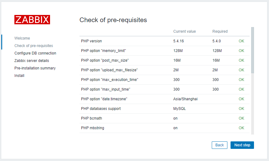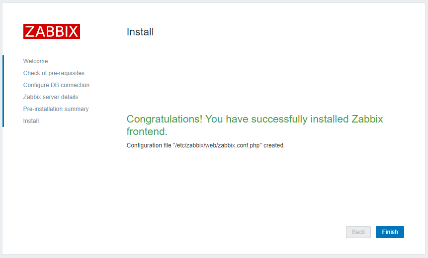 到这一步,表示 Zabbx Server 的安装已经完成。