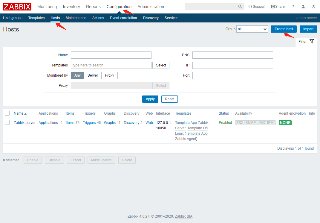 | Zabbix Server | 192.168.1.5 | node1 | CentOS 7.8 | zabbix-server-mysql-4.0.27 |
