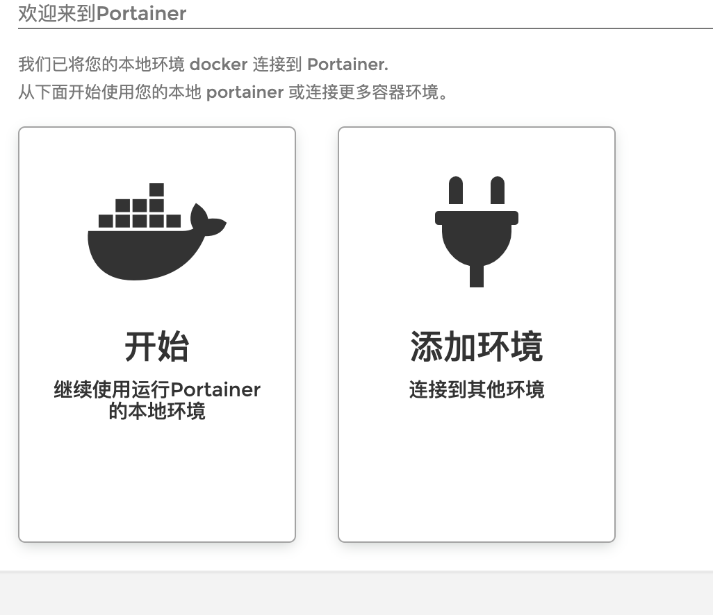 portainer是本地的,如果需要跨主机,可以选择添加环境,这里可以添加的环境有docker,kubernetes,ACL等,这个下个章节在说,这里主要说一下本地管理。