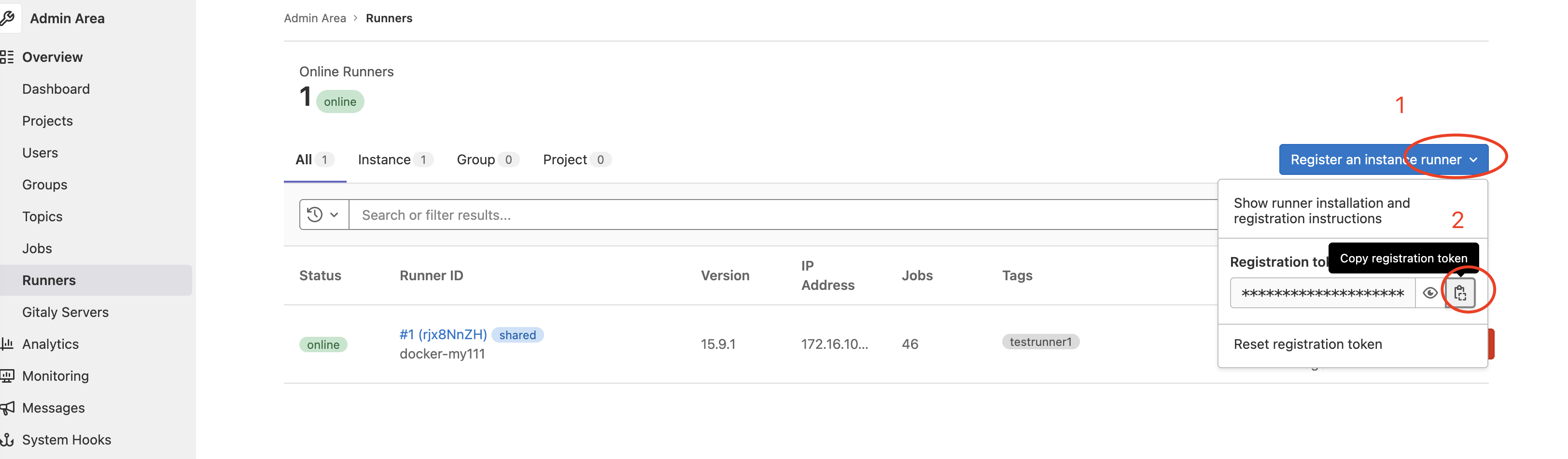 在这里找到runner的token,我这里已经加入一个了,添加方法参考下图