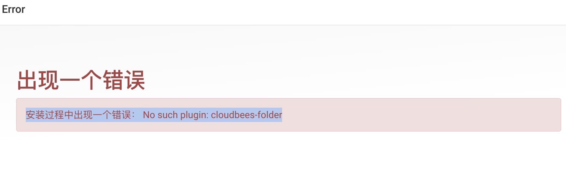 在kubernetes集群中部署jenkins集群,前面安装kubernetes的时候为了省劲就在原有的swarm的基础上直接部署了,结果各种问题,所以也都一一解决了,但是在安装jenkins的时候也安装成功了,不过在安装插件的时候提示”No such plugin: cloudbees-folder“