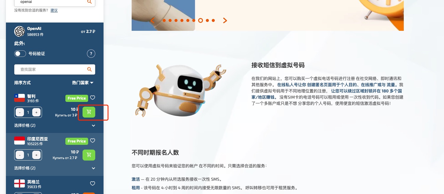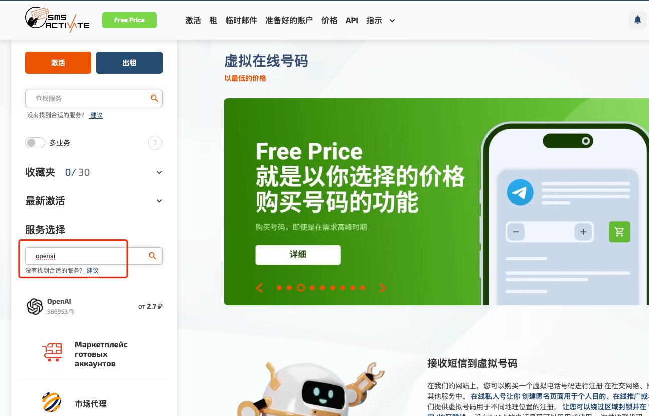 以前自己注册过一个,而且我用的也不多,所以就没太在意,最近公司准备使用私有化就重新捡起来了,注册openai的方式,也踩坑了。首先,注册之前一定要有一个邮箱,邮箱最好是gmail,outlook,也可以使用苹果的,除此之外使用其他的邮箱,就是在openai注册成功也不一定会有免费的五美金。邮箱注册方法这里就不多说了,outlook注册地址:https://www.microsoft.com/zh-cn/microsoft-365/outlook/email-and-calendar-software-microsoft-outlook 谷歌邮箱:https://www.google.com/intl/zh-CN_cn/gmail/about/注册成功后在注册openai.因为注册openai需要短信验证,所以我们需要一个短信验证工具,我这里使用的是https://sms-activate.org/,如果有更好或者更便宜的也可以换成其他的,这个支持支付宝支付,注册成功之后