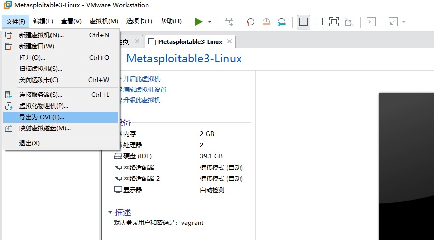 成功导入后,把虚拟机导出OVF,导出时给导出的文件修改一下后缀,改成ova