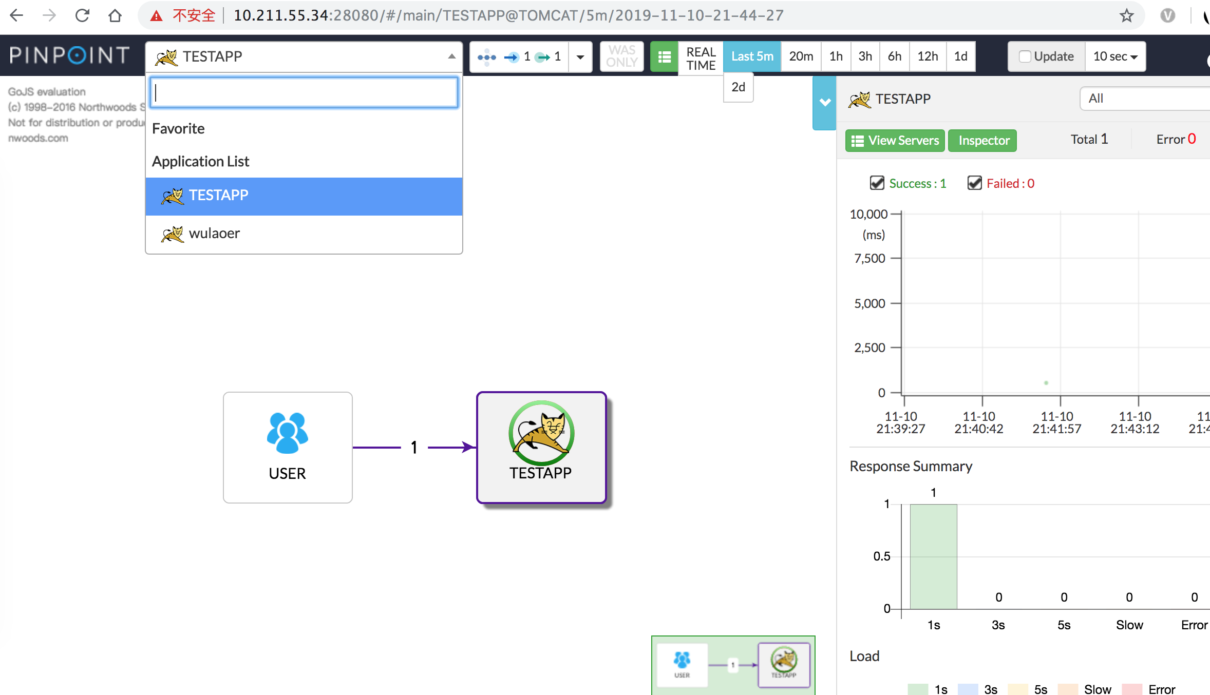 pinpoint客户端已经在tomcat启动的时候加载了,在进程中可以看到指定的路径已经正常加载。下面看一下pinpoint服务器是否收到自己定义的wulaoer的数据