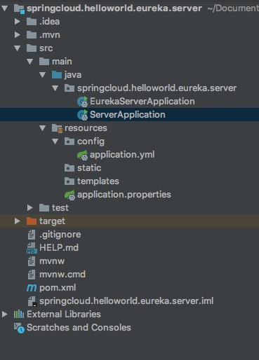 3、配置application.yml,如果没有安装web结构里就不会有static和templates目录,可以把application.properties文件复制了一份修改文件名,如果已经安装web可以在resoources目录下创建config目录,并在config目录下创建application.yml文件,并配置:
