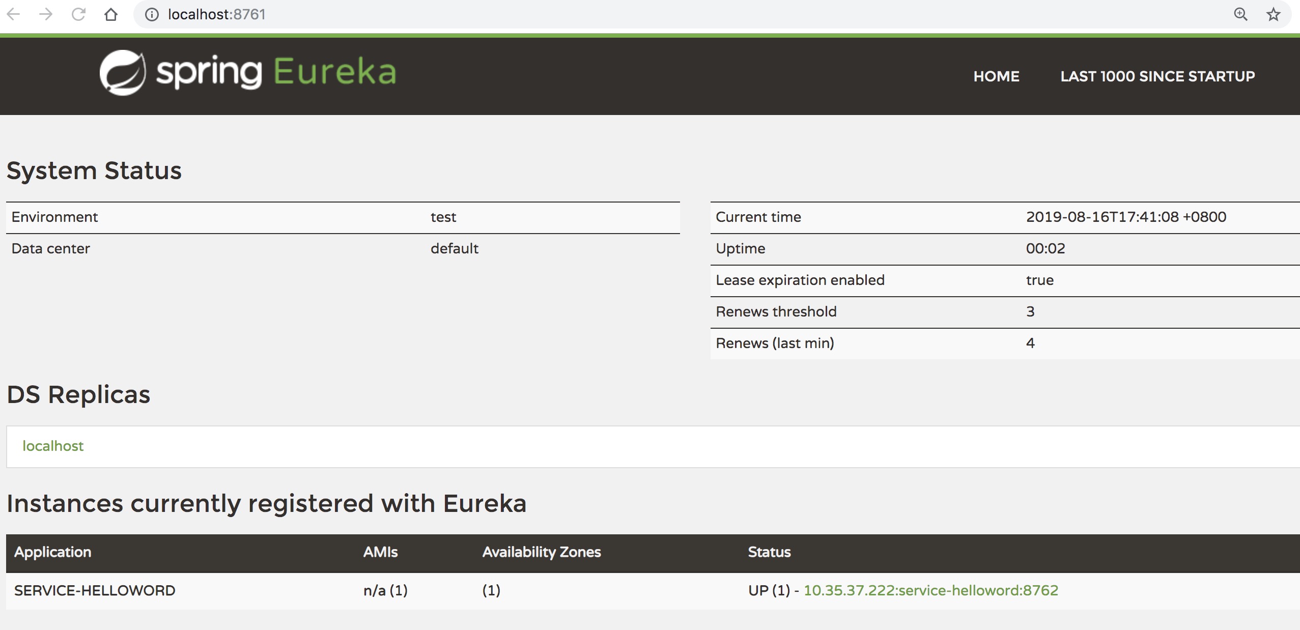 这时再次将客户端微服务启动,刷新服务注册中心会发现,自我保护状态已取消。