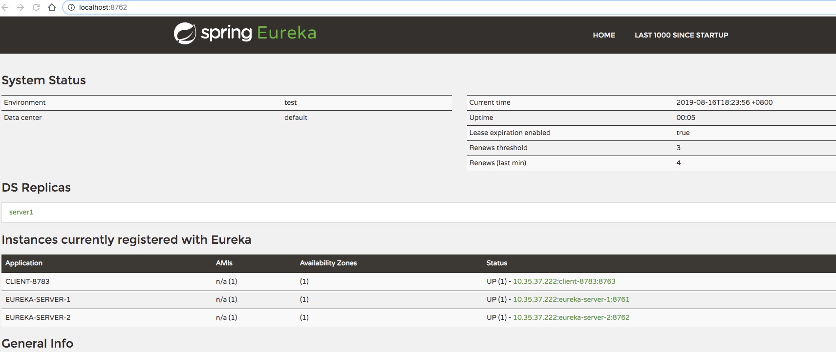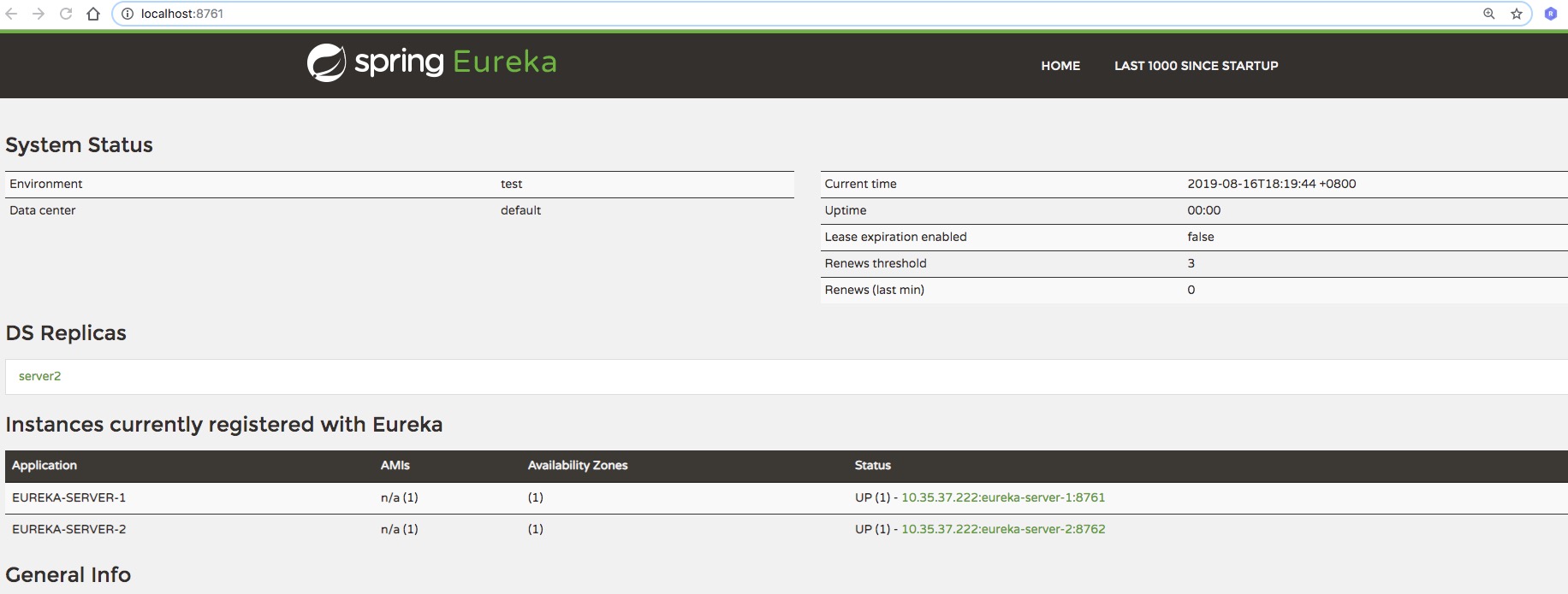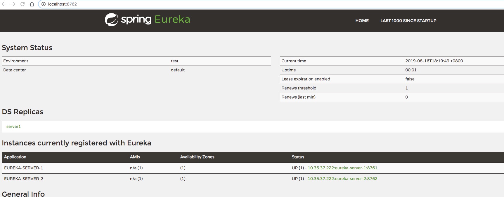 分别启动两个服务server1,server2,并访问http://localhost:8761,http://localhost:8762,如下:
