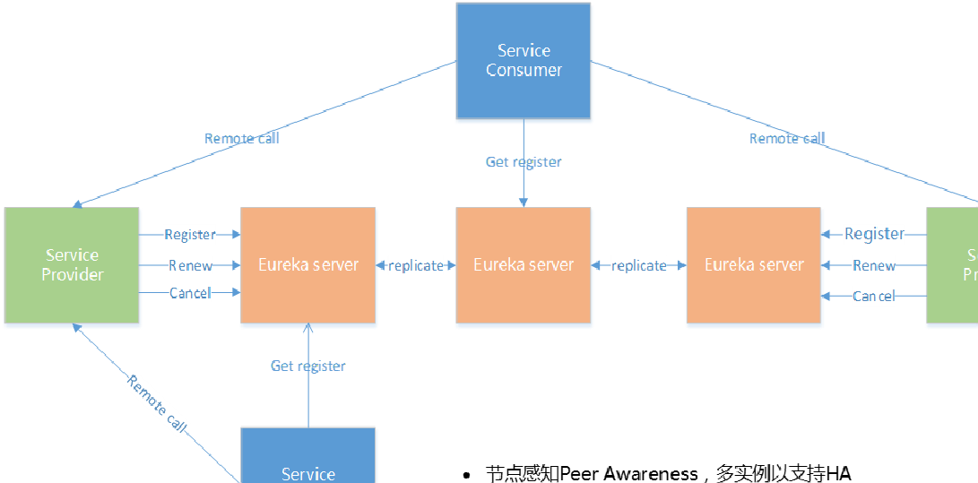 - 服务端-没有存储,内存保持,每服务实例需要发送心跳去续约 - 客户端-在内存中缓存着eureka的注册信息,因此不必每请求到eureka查找服务 - eureka之间会做注册服务同步,从而保证状态一致,客户端只需访问一个eureka