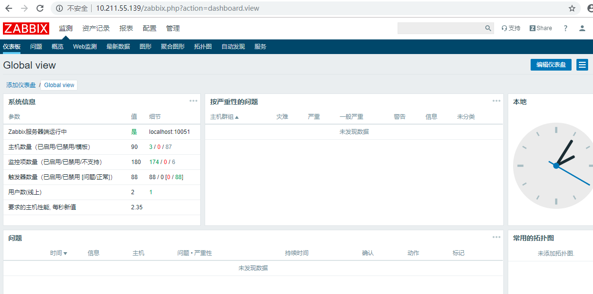 监控正常,这里如果客户端没有启动或者防火墙限制都会出现红色的zabix