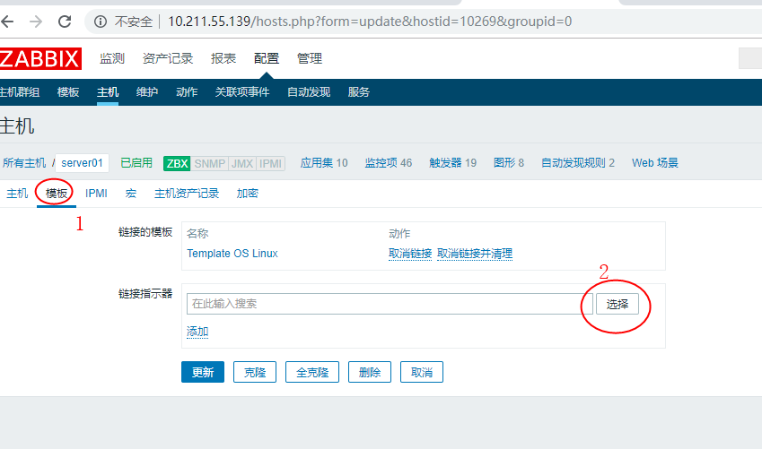 稍等几分钟,我们需要给客户端一个监控的模板,在zabbix模板中Template OS Linux已经包含了Template App Zabbix Agent所以我们只做系统的监控只增加Template OS Linux即可。