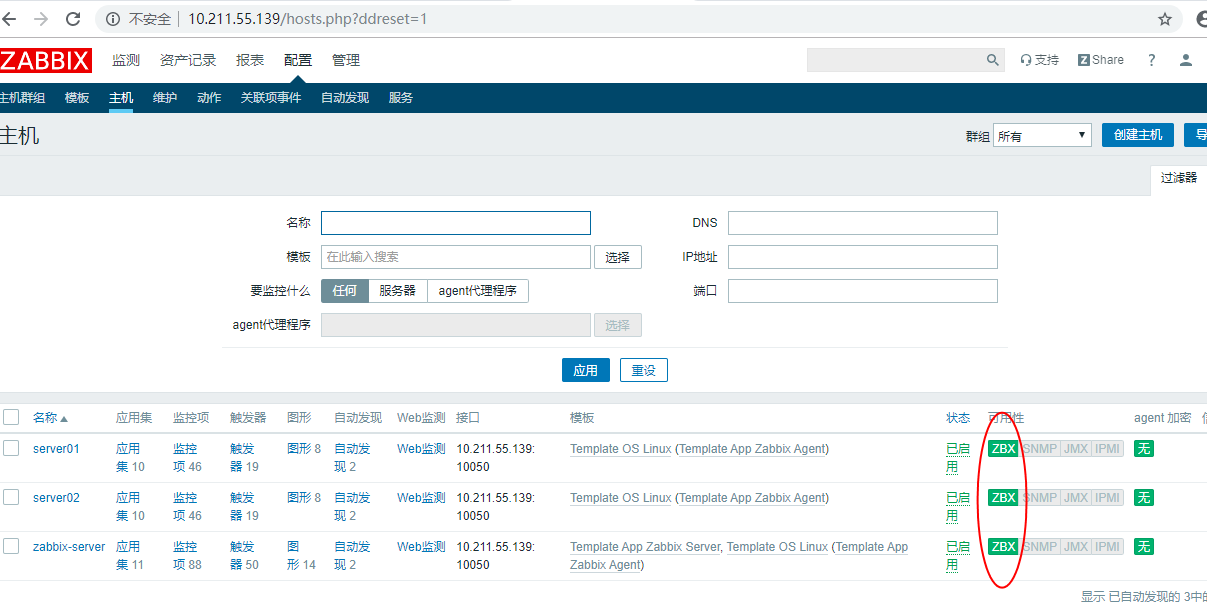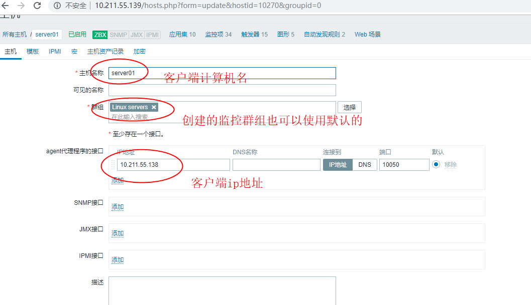 至此,客户端设置完成,我们需要把zabbix客户单加到zabbix server中。