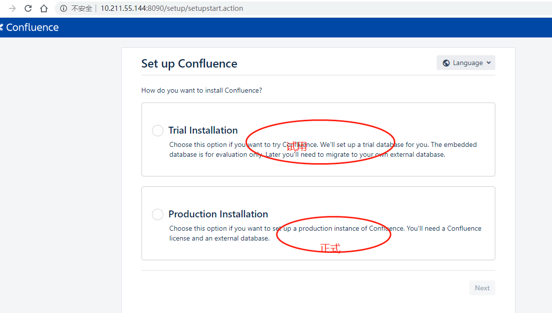 confluence已经安装完成,使用浏览器看一下。