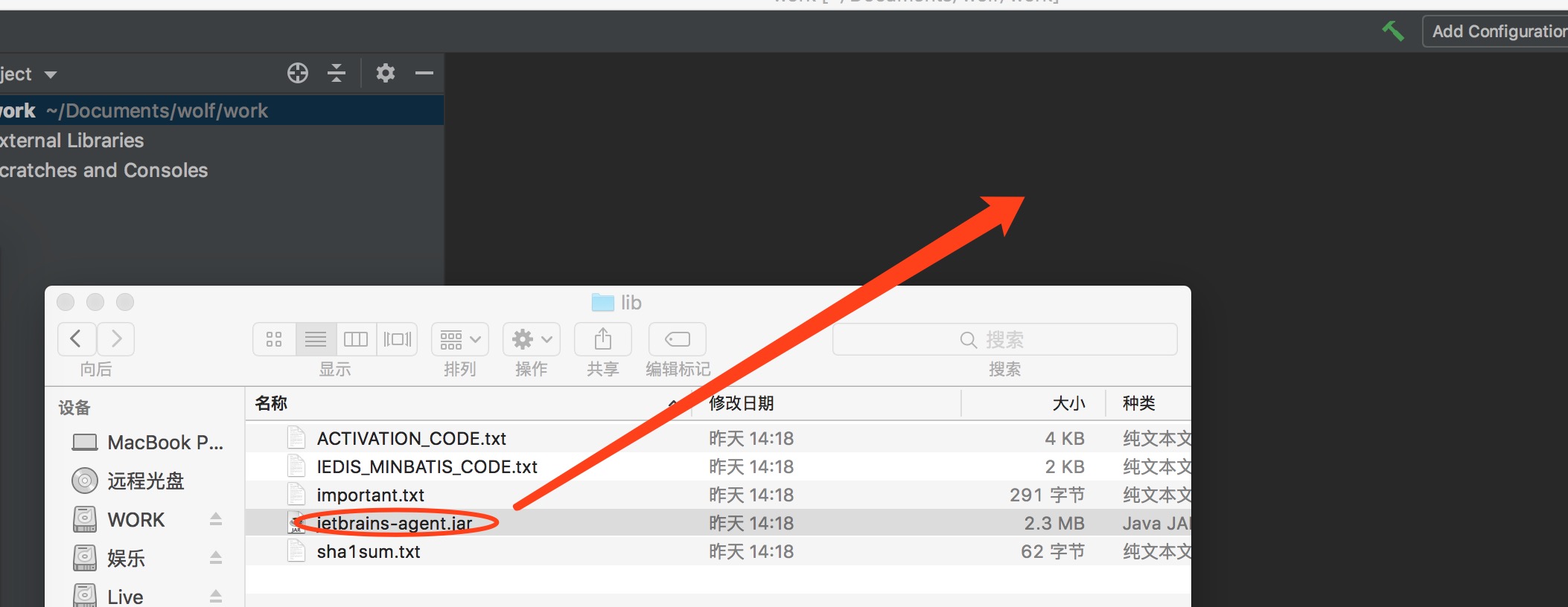 根据自己的需求,下载,不过分享连接里也下载了,如果不能访问IDEA官网,可用在分享里下载,安装之后。分享的目录中有一个jetbrains-agent 2目录下lib中有一个jetbrains-agent.jar,直接把jetbrains-agent.jar拉到打开的IDEA中即可。如下图: