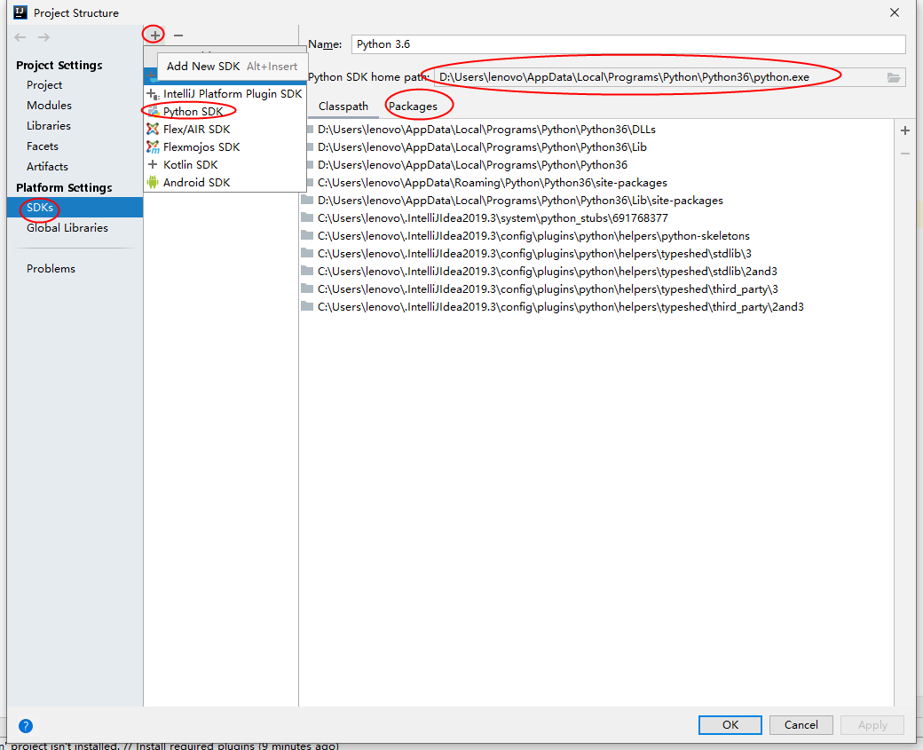 运行python,需要添加python的SDK,在file--project structure中,